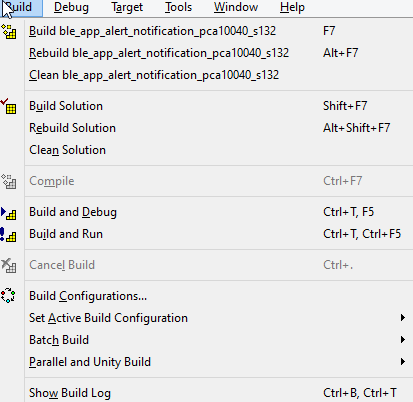 Rebuilding ‘ble_app_alert_notification_pca10040_s132’ from solution ‘ble_app_alert_notification_pca10040_s132’ in configuration ‘Release’