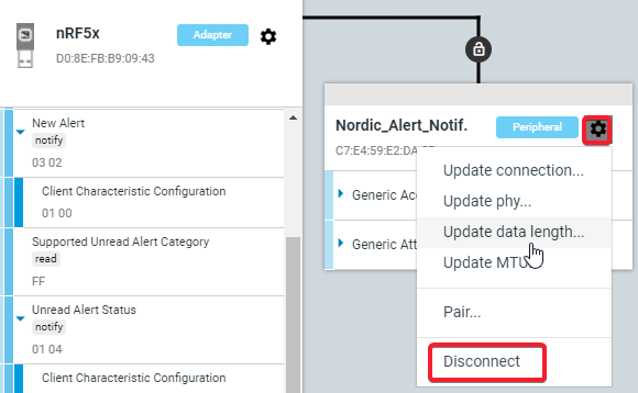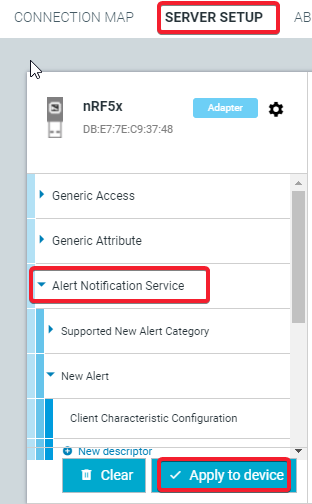 This example requires one of the following SoftDevices: S112, S132, S140 Important: Before you run this example, make sure to program the SoftDevice. The Alert Notification Application is an example that implements the client role of the Alert Notification