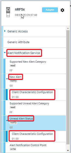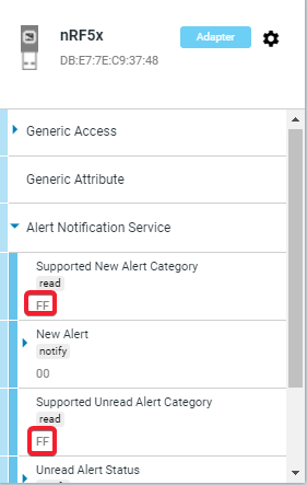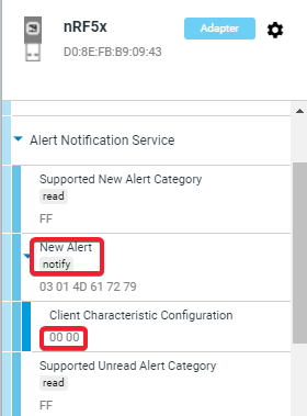 5-12> Set the value of the New Alert characteristic (0x2A46) to '03 02' and click the 'write' button.