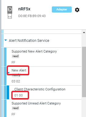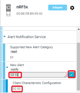 5-10> Set the value of the New Alert characteristic (0x2A46) to '03 02' and click the 'write' button.