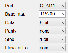 : 아래설정중 COM 포트만 수정하면 됩니다. ( 115200 , 8 ,N ,1, N)