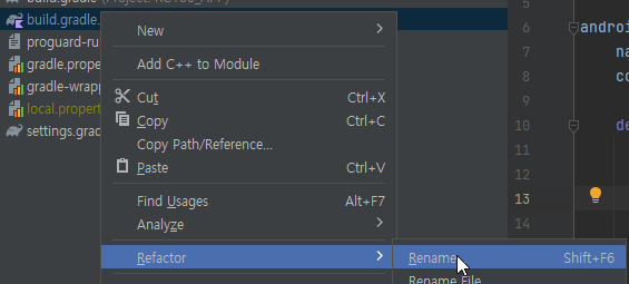 ▶ module: app 의 build.gradle 이름을 build.gradle.kts 로 변경후 Sync now 클릭합니다.
