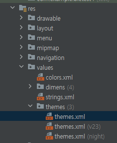 ↓ res/values/themes/themes.xml 파일을 열고 BleTest2 이름을 BleTest4로 수정해줍니다.