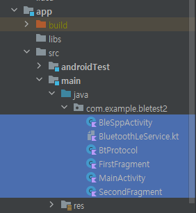 : BleTest2 , BleTest4 프로젝트의 Android 탭을 열고 순서대로 복사를 하겠습니다.