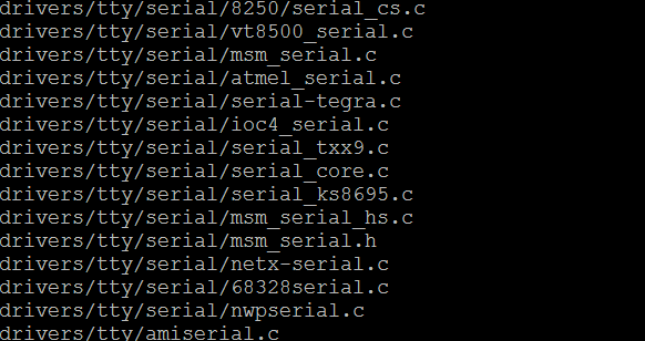 drivers directory 아래의 파일 중 "serial " 단어가 들어간 파일 찾기