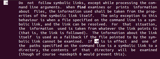 : 심볼릭 링크를 따라가지 않는 옵션 ( 명령 라인 아규먼트 제외)