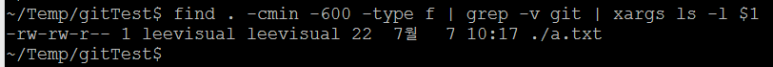 >> 600분 이전 파일 검색 (find . -cmin -600 -type f )