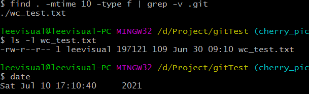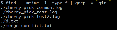 >> 하루안에 만든 파일 찾기 (.git 이 포함된 파일 제외)