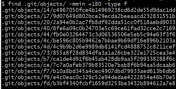 >> .git/objects/ 아래의 파일중 170분 이전에 만든 파일찾기