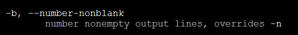 -b, --number-nonblank number nonempty output lines, overrides -n