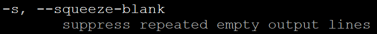 >> 여러행의 개행이 있을경우 한줄로 표시 (suppress repeated empty output lines)