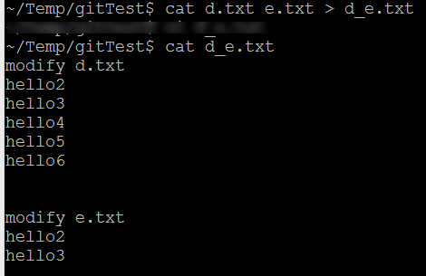cat 다음에 연속적으로 파일이름을 적으면 (d.txt e.txt) 연속적으로 파일내용을 출력 합니다.
